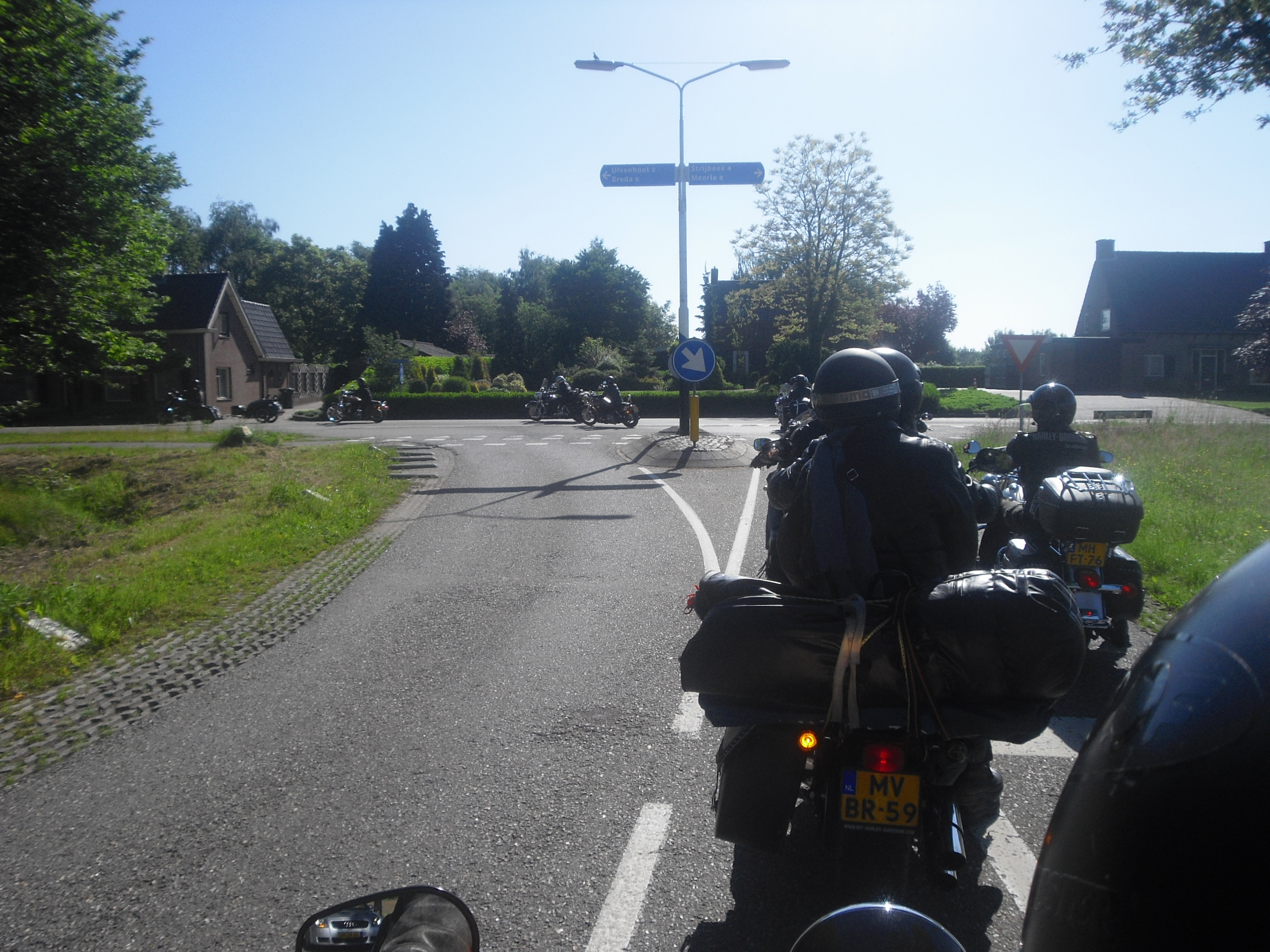 Na een hete douche, ontbijt en inpaksessie was alles weer op de motor vastgesjord en kusten we de andere chapterleden ten afscheid. Zij vertrokken later. Daan baande zich met zijn sirene een pad over de campingpaadjes. Onder zijn leiding bromden we naar St. Vith, maakten nog een tussenstop voor koffie en thee en zetten toen via de snelweg koers naar Geel. Wat hebben ze daar smaakvolle familiepizza’s zeg. Om je vingers bij af te likken. De regen viel intussen trouwens mals uit de zwaar bewolkte hemel. Geen nood, gewoon wachten tot het ophield. Droog bereikten we zondag middag weer Vman’s huis. Een weekend met een zon en een sterretje!