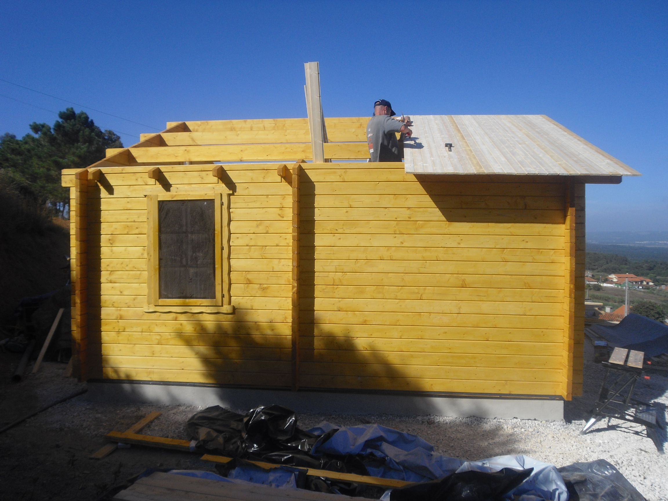 Vrienden van ons hebben een stuk land in Portugal gekocht, waar zij zich over een aantal jaren gaan settelen. Er wordt een prachtig huis gebouwd met een magnifiek uitzicht. Om er echter ook nu al van te kunnen genieten, hadden M&M het plan opgevat om alvast een houten hut te plaatsen. Makkie toch, zou je denken? Nou, niet als deze hut in onbewerkte planken, plankjes, balken, latjes en ondefinieerbare vormen afgeleverd wordt met een aantal pagina’s aanwijzingen. Een uitdaging was het!