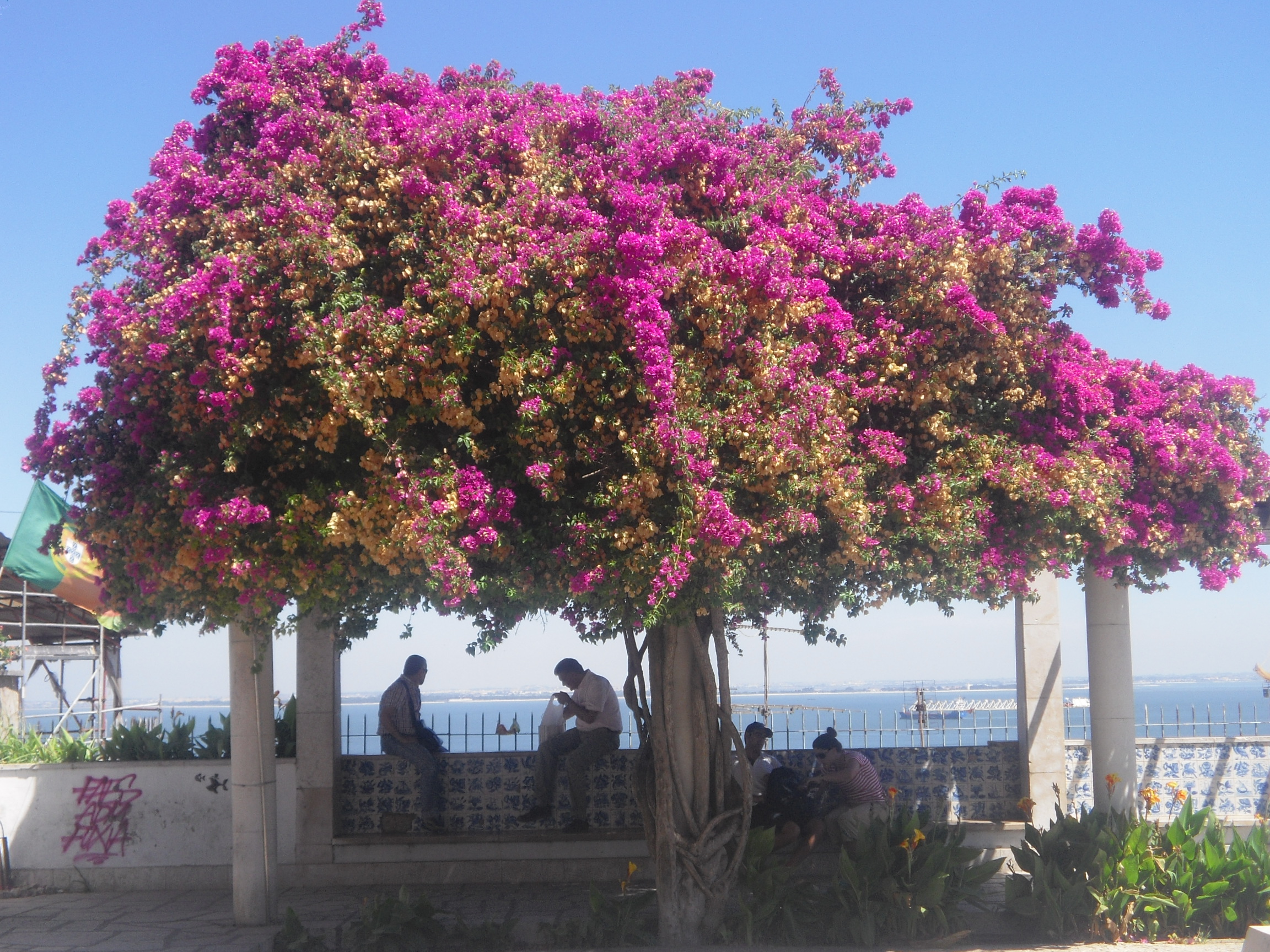 Halverwege de week kregen we een middag vrij van de boss en gingen we met zijn vijven naar Obidos, een middeleeuws stadje omringd door een muur. Vman zag mij vol verbazing het ene na het andere winkeltje in stappen. Maar het waren dan ook erg leuke winkeltjes, echt om te snuffelen. De laatste dag brachten we door in Lissabon. Steile straatjes, gladde kinderkopjes, felle bloemen, ook felle hitte.