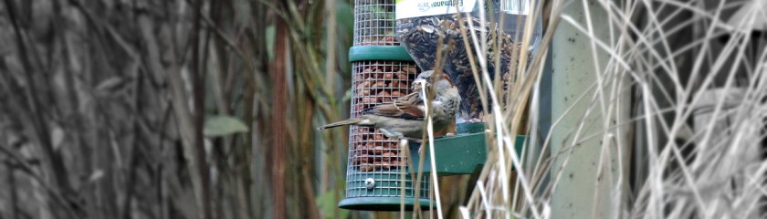 Buiten is het een en al bedrijvigheid. Mussen klemmen zich vast aan de pindakoker, knabbelen aan het vogelzaad en pikken wellustig in de pindakaas. Geen gewone pindakaas, maar speciale. Zonder zout. En twee keer zo duur natuurlijk. De tortelduif loopt geagiteerd over de tuintafel, en brokken nat brood belanden met enige nonchalance buiten de voederbak. Maar geen nood, die eet hij straks wel op. Of anders morgen; het buffet is immers dagelijks geopend.