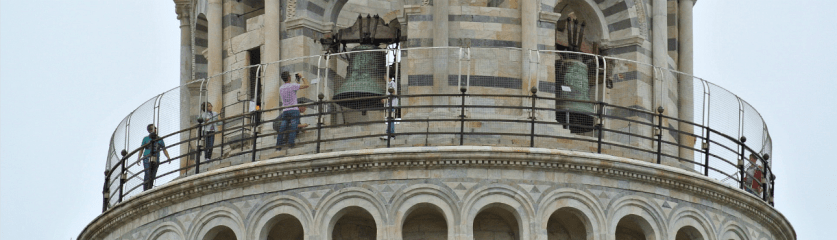 In een stinkende Ford diesel rijden we door Pisa. Gelukkig is er veel meer te zien dan alleen de klokkentoren van Duomo Santa Maria. En hoewel de toren vervaarlijk overhelt, is er nog een heel ander gevaar: een bijenzwerm die neerstrijkt bij de ingang, terwijl talloze bijen de lucht doen zoemen. Voetje voor voetje dichterbij. Bij het maken van de foto hieronder zit ik klaar om weg te sprinten. Allemaal mensen die in gekke poses met de toren op de foto willen, paardenkoetsen, zon en schaduw. Sunglasses and rolex. En selfie stokken. Overal zie je verkopers die toeristen graag een handje helpen. Echter niet mijn handen. Pisa is een mooie oude stad, waar gele gebouwen nagloeien van en in de zon. Hand in hand slenteren we weer terug langs de kathedraal en gaan op weg naar ons appartement.