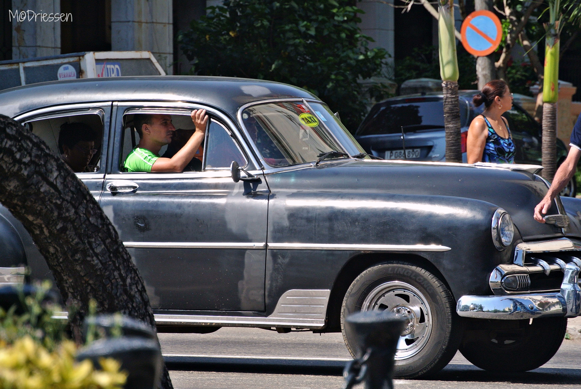 Wat echter nog veel meer aanwezig is, zijn de uitlaatgassen. Sjesusmina zeg, wat een vettige metalen walm is dat, bleh. Maar je kijkt je ogen uit. Niet een paar oude auto’s, maar heel erg veel – in allerlei vormen en kleuren. Fietstaxi’s, brommertaxi’s, gele taxi’s, en oldtimer taxi’s – de een na de ander. Kleine vrachtwagens met militairen erin, brommers met dopjes op de hoofden, en flanerende mensen. Jonge meiden met strakke lijven en dito kleding. Iets oudere meiden met minder strakke lijven, maar met dezelfde strakke kleding.