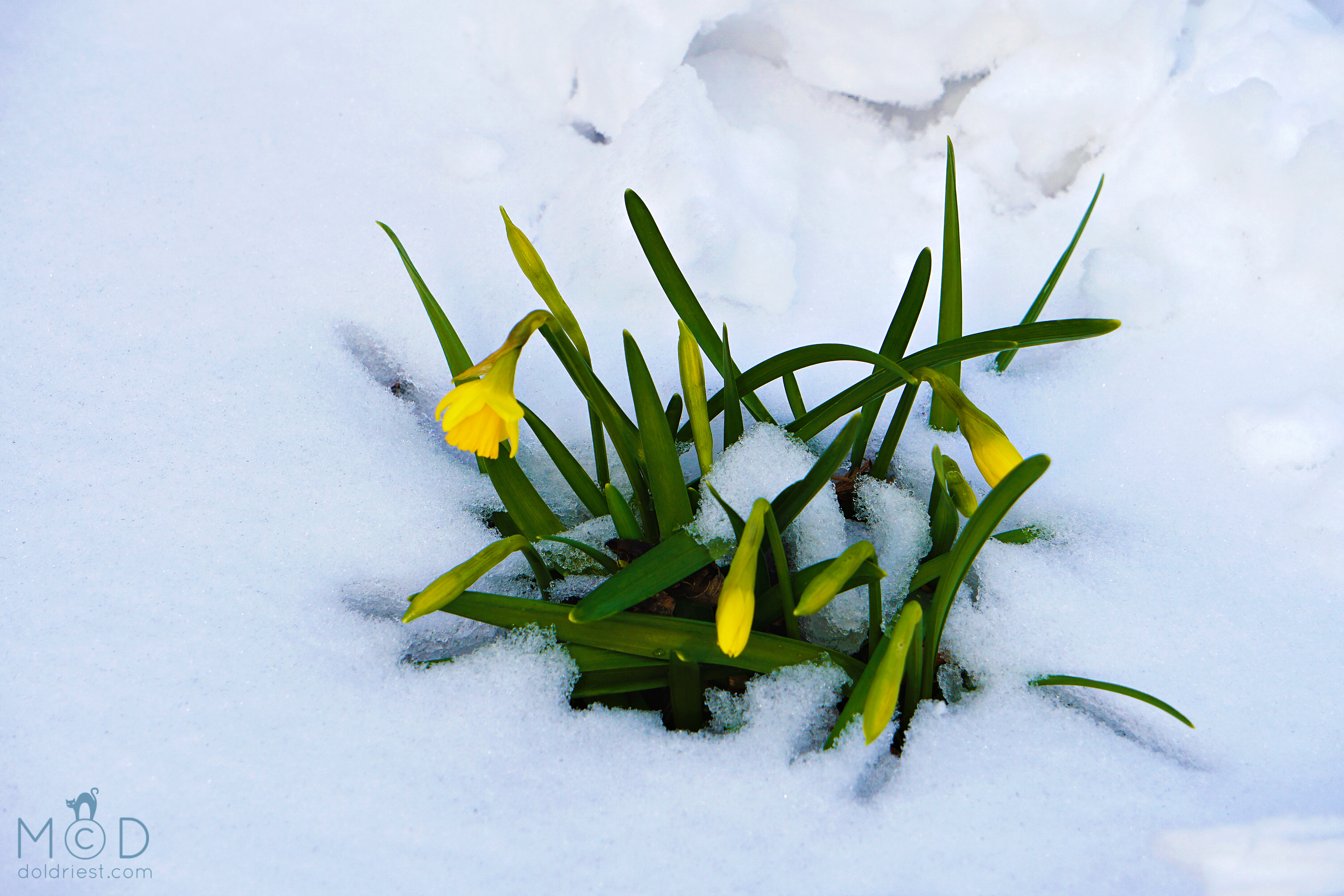 Lief en vrolijk hè, zoals ze dapper hun koppie boven de sneeuw uit steken? Dank je!