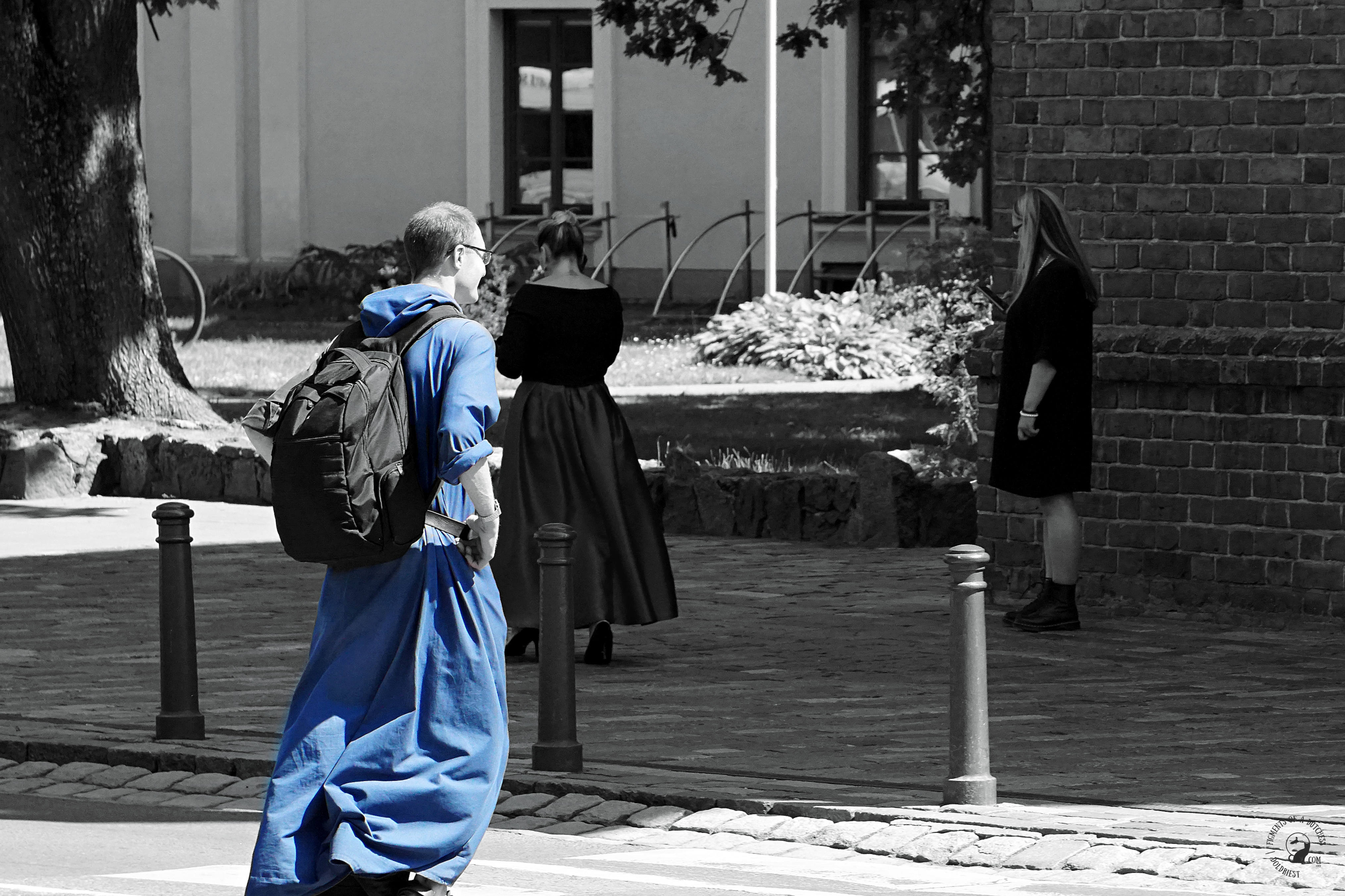 Dit tafereel zag ik tijdens mijn vakantie in Vilnius, Litouwen. Welke fotobewerking heeft jouw voorkeur: de rode of de blauwe versie?