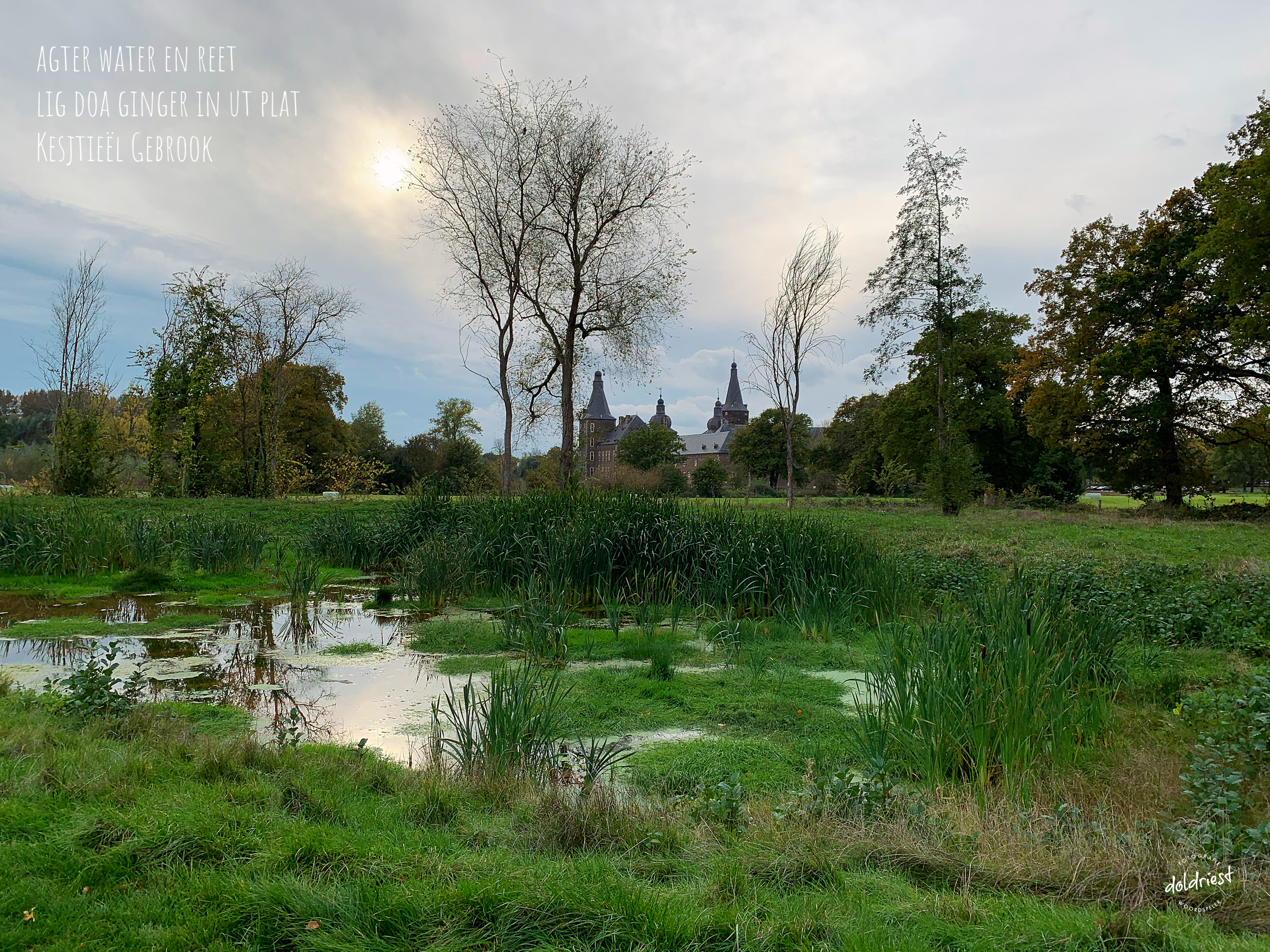 Geplaatst in Fotogedicht Kesjtieël Gebrook Gepost op 2 november 20198 november 2019 door Doldriest klik! . .. agter water en reet lig doa ginger in ut plat Kesjtieël Gebrook .. . Dit keer een haiku in ons Limburgse dialect. Bij dit prachtige kasteel Hoensbroek ben ik opgegroeid. Ieder weekend schrijf ik een fotogedicht. Dit mag natuurlijk ook een Japans gedicht zijn. Doe je mee? Deel deze post op: Klik om te delen op X (Opent in een nieuw venster) X Klik om te delen op Facebook (Opent in een nieuw venster) Facebook Klik om op Pinterest te delen (Opent in een nieuw venster) Pinterest Klik om te delen op Pocket (Opent in een nieuw venster) Pocket Klik om op LinkedIn te delen (Opent in een nieuw venster) LinkedIn Klik om te delen op WhatsApp (Opent in een nieuw venster) WhatsApp Meer Klik om te delen met Reddit (Opent in een nieuw venster) Reddit Klik om te delen op Telegram (Opent in een nieuw venster) Telegram Klik om op Tumblr te delen (Opent in een nieuw venster) Tumblr Klik om dit te e-mailen naar een vriend (Opent in een nieuw venster) E-mail Klik om af te drukken (Opent in een nieuw venster) Print Vind-ik-leuk Aan het laden...