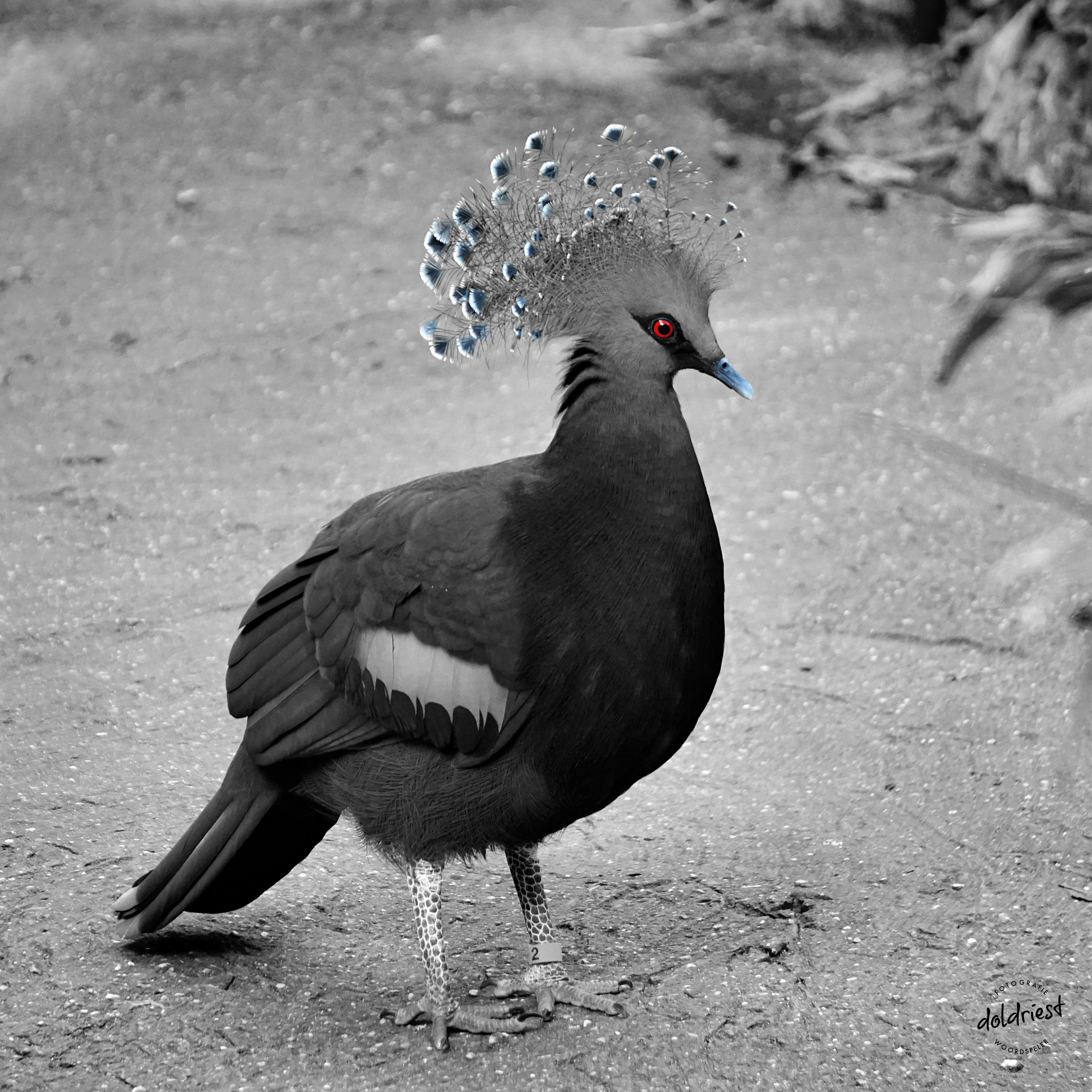 Al zal deze Victoria Kroonduif, met zijn felrode ogen en blauwe veren, niet zo snel door het land vliegen. Dit prachtexemplaar woont in Wildlands.