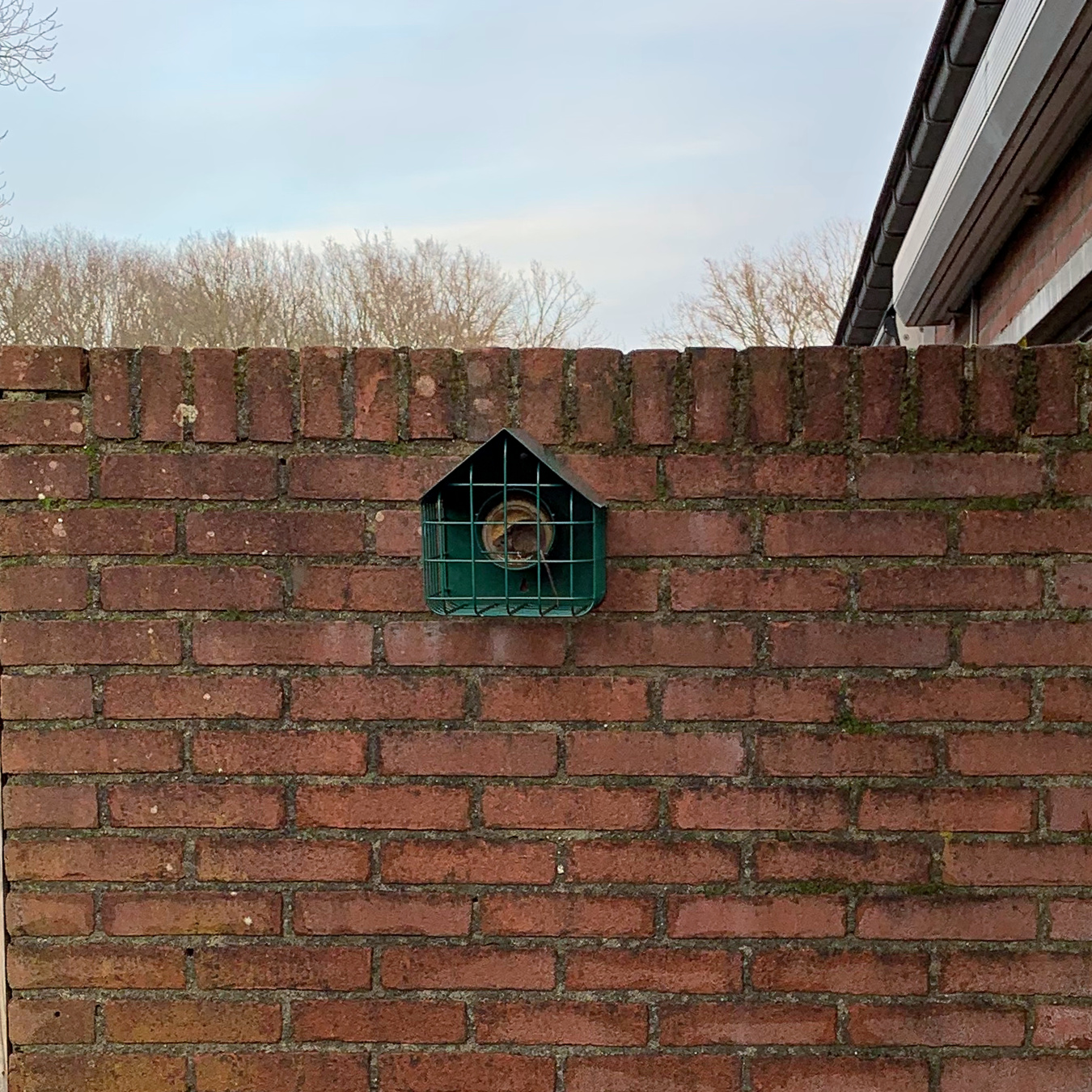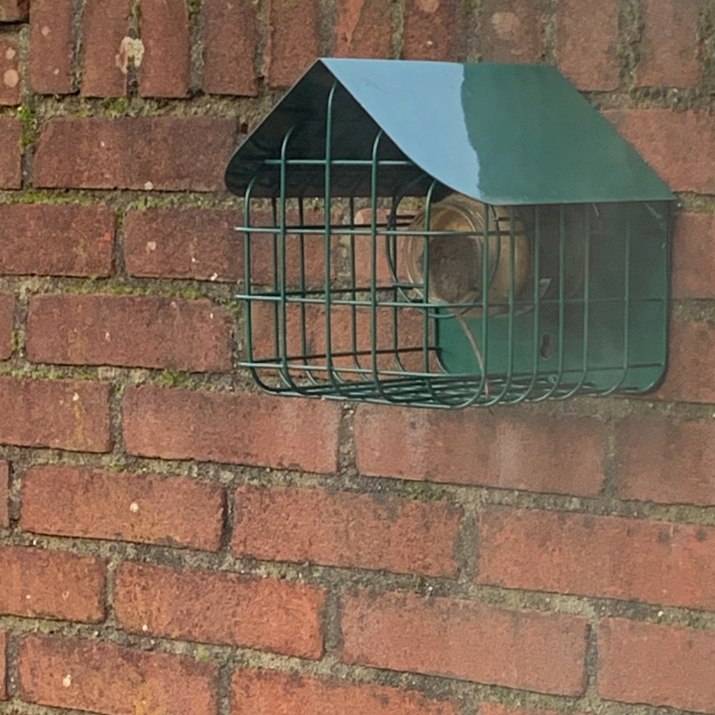 Vrijdag laat in de middag hang ik aan de lijn met een vriendin en kijk toevallig uit het raam. Wat een rare vogel in de pindakaaspot? Een vogel met een staart. Natuurlijk heeft een vogel een staart, maar niet zo eentje. Het is vast een Avis Murem Arachis.