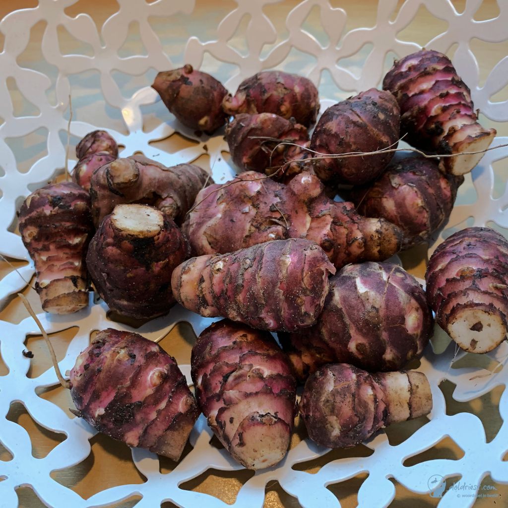 ’s Avonds maak ik soep van de kastanjechampignons, bak een omelet met paprika, en rooster de aardperen met zeezout in de airfryer. Deze voor mij nieuwe groente smaakt verrassend goed en doorstaat zelfs de strenge eettest van de jongens.