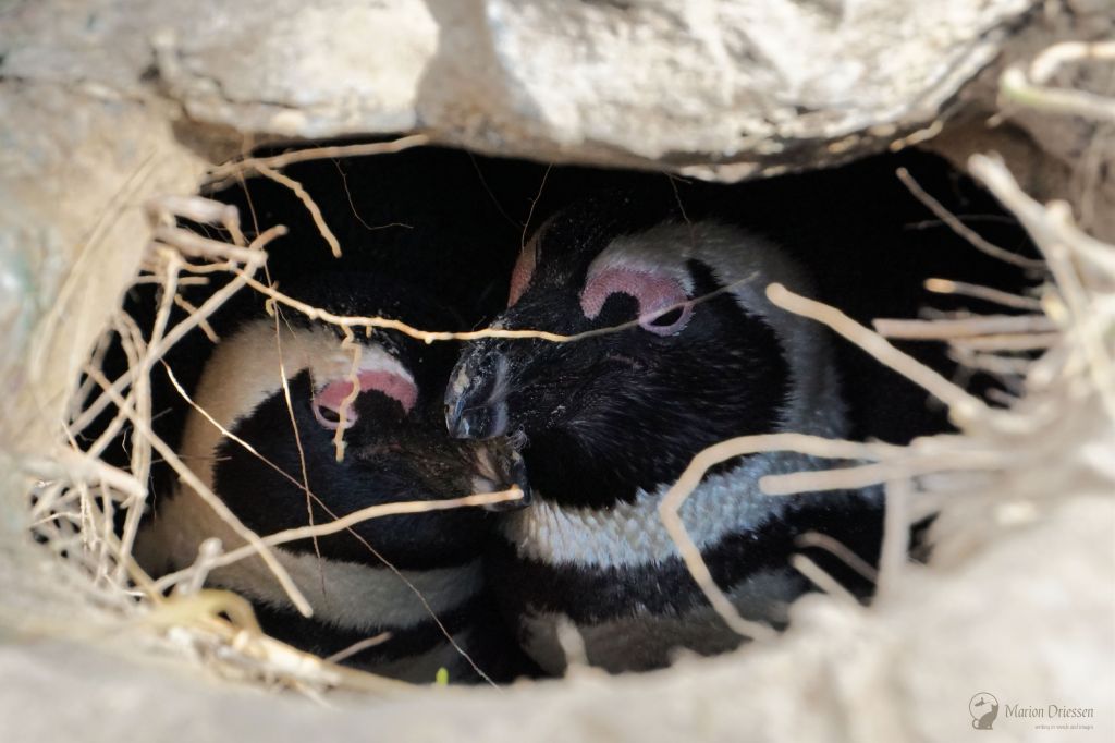Deze twee Afrikaanse (zwartvoet) pinguïns overwinteren knus in hun holletje in Safaripark Beekse Bergen. Weg van de drukte, weg van de koude wind. ❤