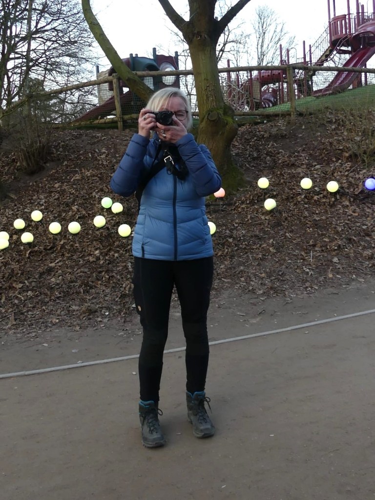 Een half uurtje later openden de poorten van het Winterplein en vonden we een plekje op het terras. Langzaam viel de schemering en werd het kouder, maar de frietjes – sorry Ko en Daphne: patátjes – verwarmden ons van binnen en gaven nieuwe energie. Het was tijd voor de Light Safari!