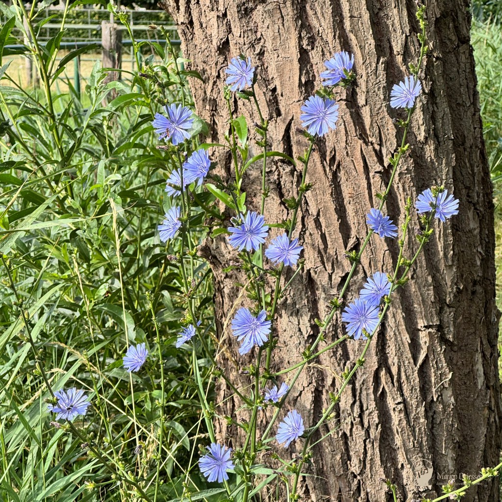 Deze wilde cichorei of zonnewervel wiegde aanlokkelijk langs de rand van de weg in de nog koele ochtendzon. Wat een hemelsblauwe pracht!