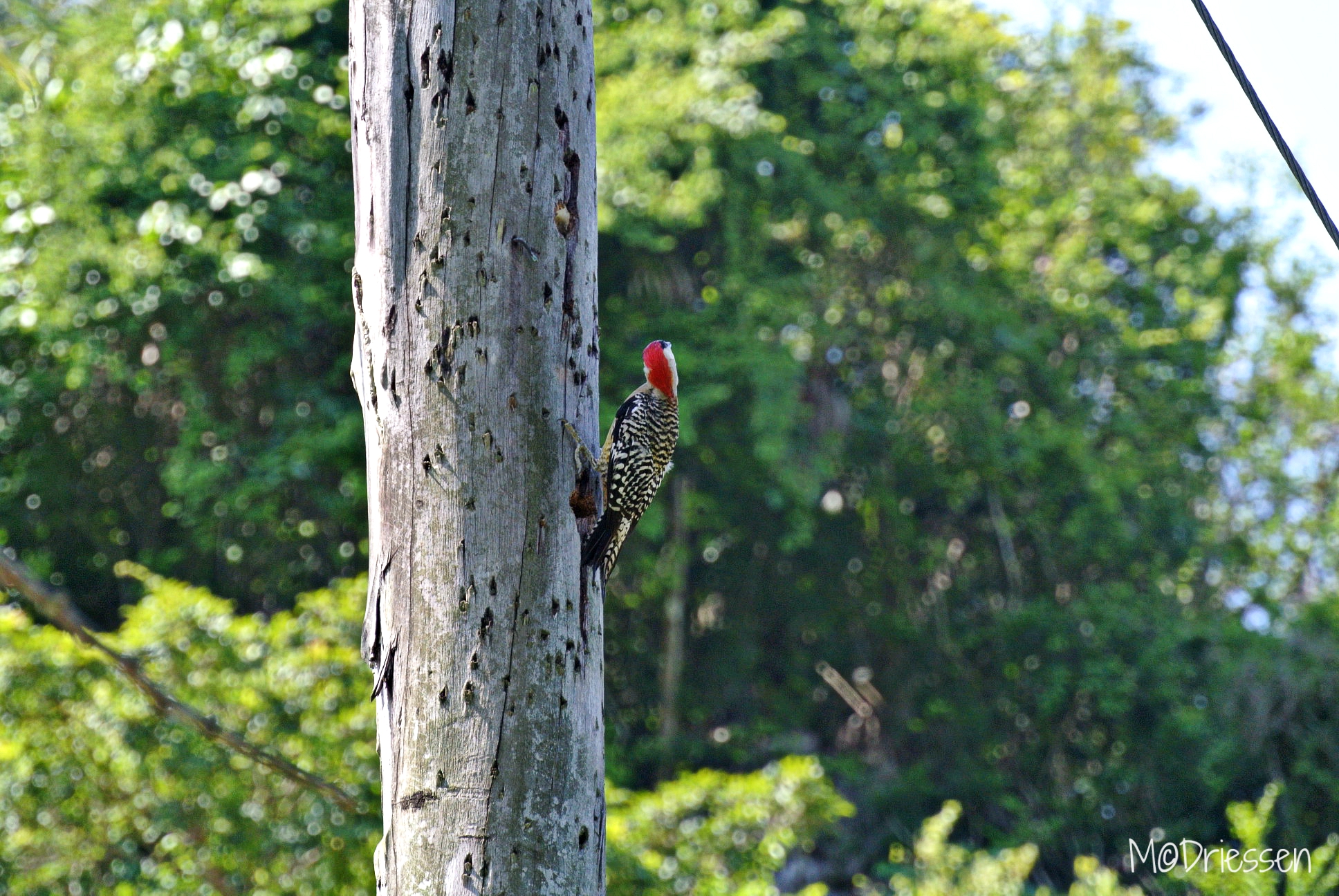 Al snel staan we weer aan wal bij wat kiosken met souvenirs en drinken. Ik koop een sleutelhanger met een houten kat en Victor een briefopener met heft in de vorm van een zeepaardje. Verderop staan twee witte buffels geduldig te wachten tot hun bazen uitgeslapen zijn. Die leggen we natuurlijk vast op de gevoelige plaat. Vol verwachting lopen we the Bird Trail op – illegaal, want we zien niemand die kaartjes verkoopt. En dat is maar goed ook, want het stelt echt niets voor, al is de kleine vallei zeer rustgevend, weids en mooi. Kalkoengieren, een specht die geïnteresseerd aan een boomstam hangt. Bij een restaurant langs de kant van de weg drinken we vers mango juice, mijn favoriete drank deze vakantie.