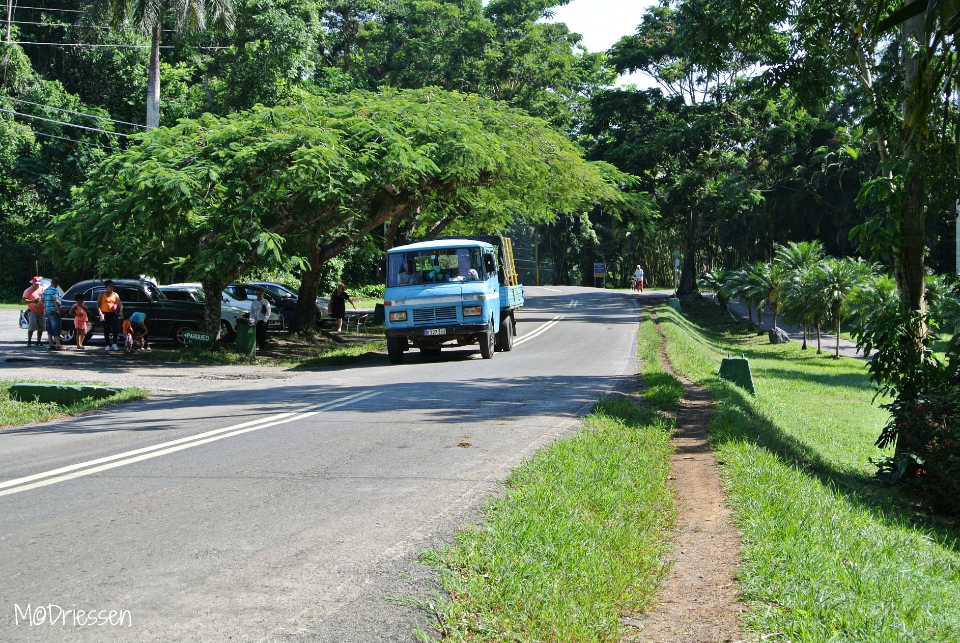 Het wilde westen is echt niet in de US, het is hier! Ontspannen diep in het zadel hoeden ze hier nog koeien. We rijden langs uitgestrekte valleien, besprenkeld met palmbomen tussen het suikerriet. Ze glooien en plooien zich over het landschap. Maiskolven wuiven in de wind. Bushokjes bij de vleet. Het openbaar vervoer is goed geregeld: je kunt alles en iedereen aanhouden. Zeer regelmatig wordt een hand met geld opgestoken, maar we zien af van passagiers.