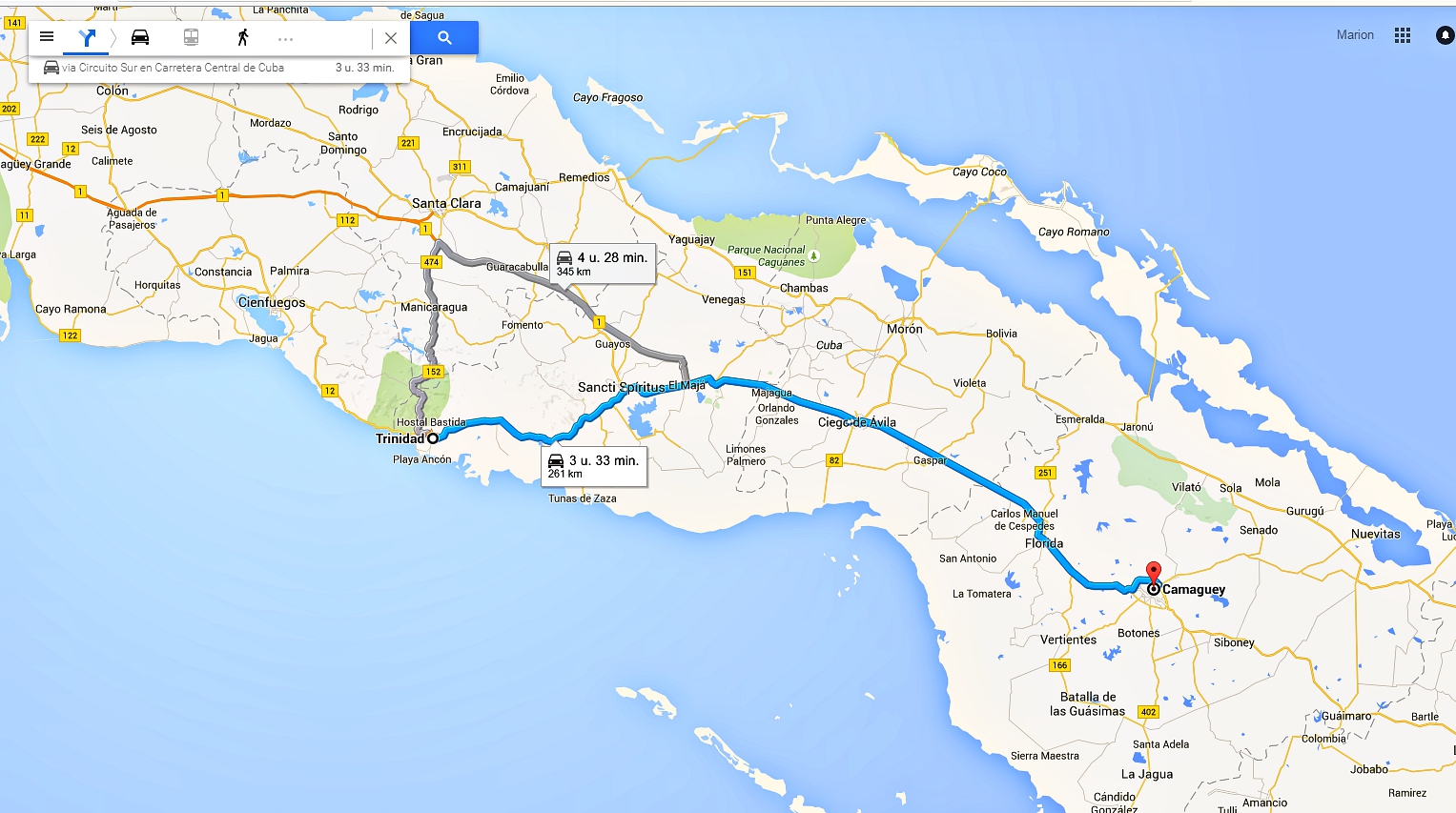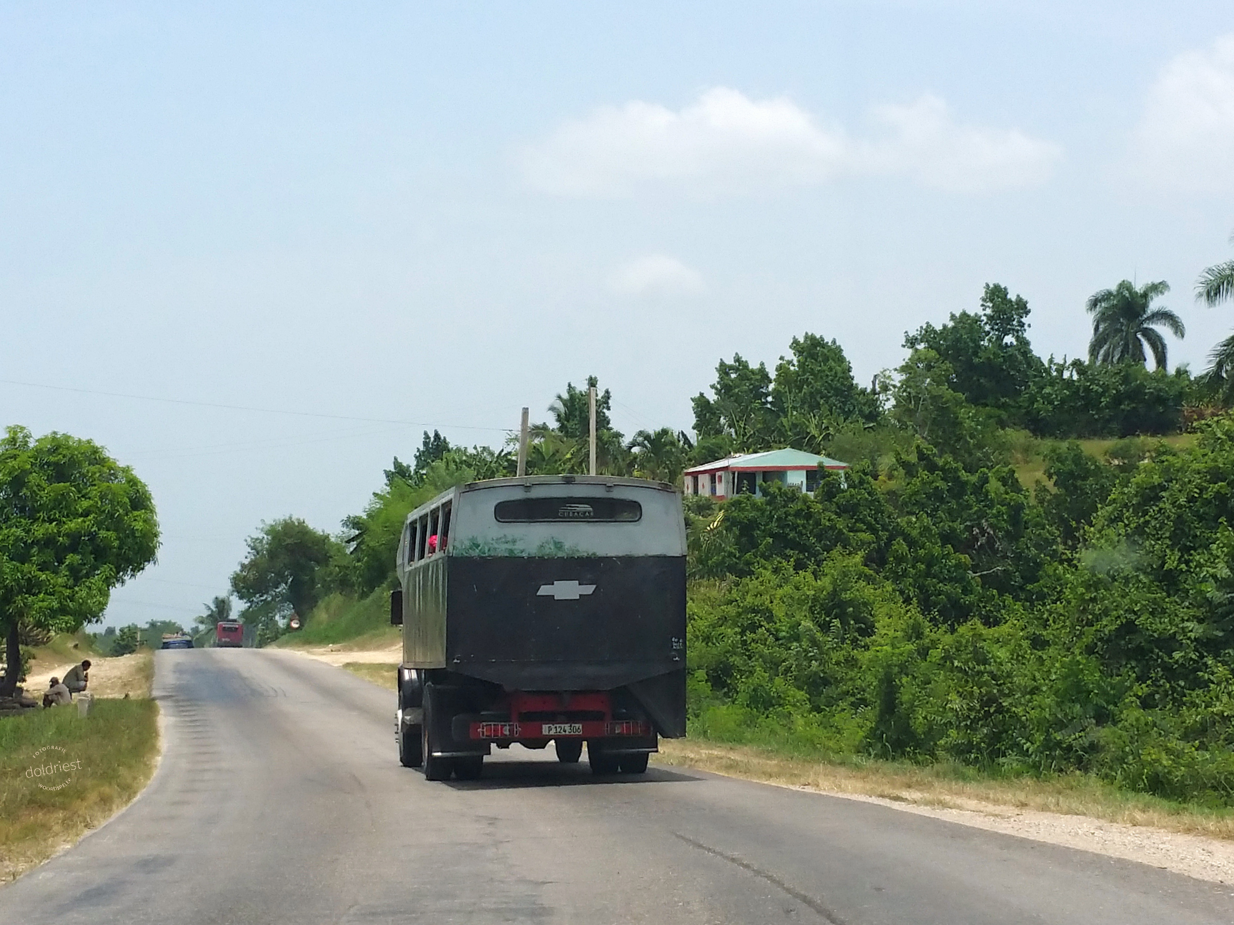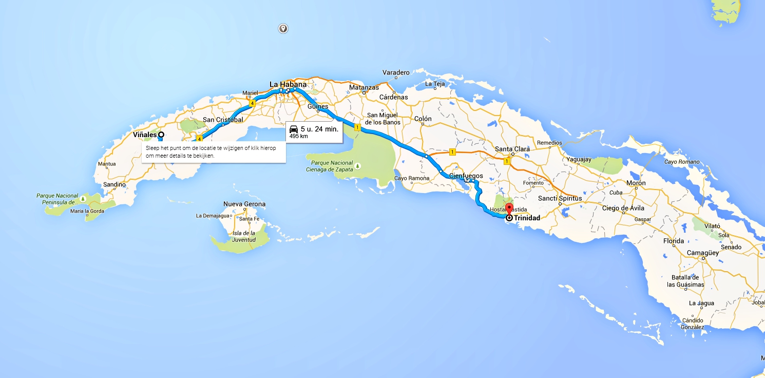 Vanuit Viñales gaat het al om 9 uur over de A4 van Oeste naar Este, op zoek naar de A1 Nazionale richting Trinidad. Het is maar goed dat er zoveel kuilen in de weg zitten, zodat we niet hard rijden. De A4 is namelijk ineens op. Ja, je leest het goed: OP. Zonder zichtbare waarschuwing houdt de snelweg er bij Havana mee op. We wijken in halfvolle vaart uit naar rechts, een kleine afslag op. Sputterend scheld ik wat op de Cubaanse wegenbouwers, maar Victor blijft de rust zelve. Hij beredeneert welke kant we op moeten en rijdt rustig verder, terwijl ik naarstig zoek naar de A1 borden. We zitten warempel precies goed. Laat dat maar aan V-man over.