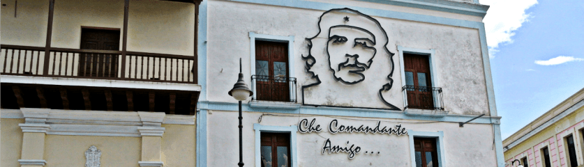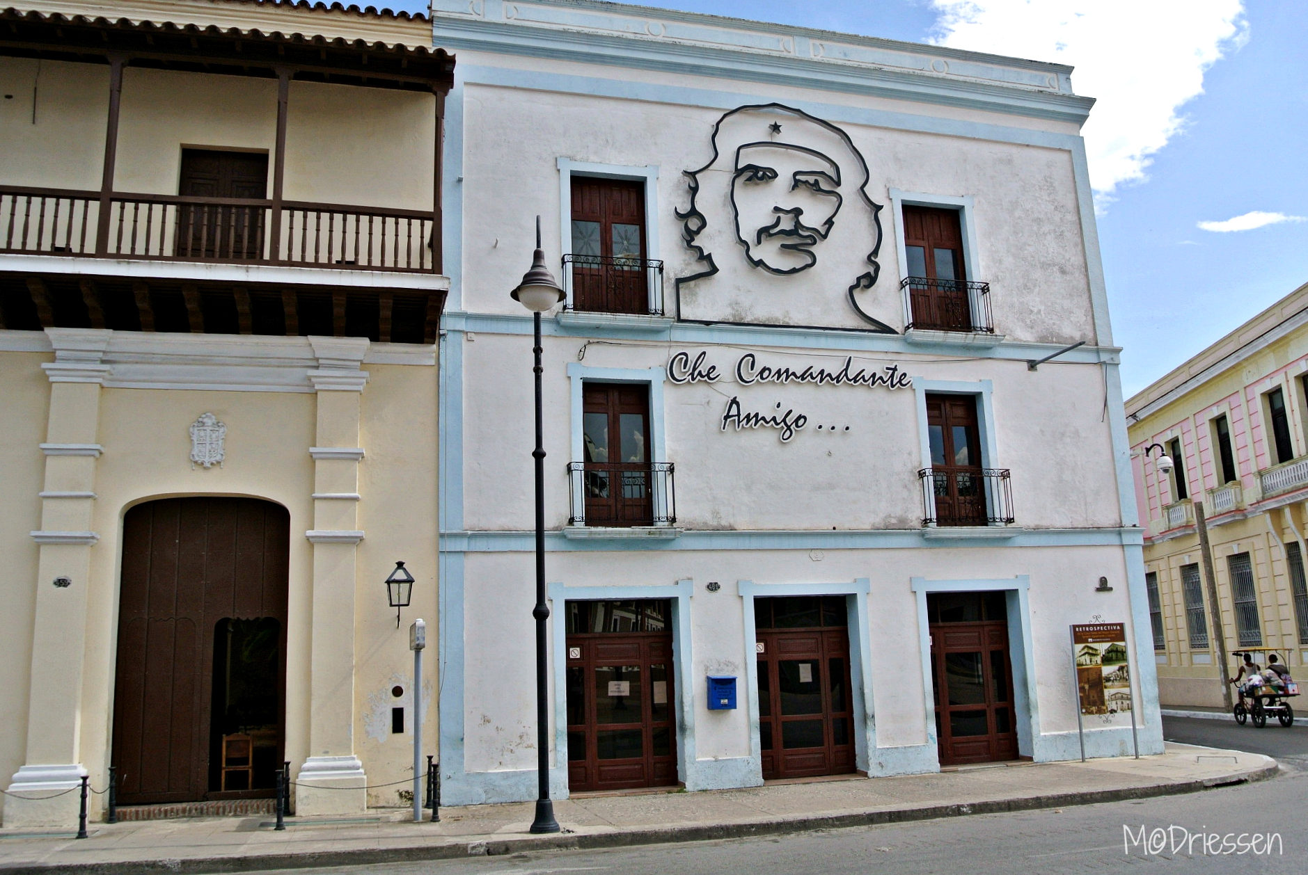 Regelmatig passeren we kruisingen op de snelweg, bizar, maar hier heel normaal. We besluiten tot een tussenstop in Santa Clara om het monument van Che Guevara te bekijken en wat rond te slenteren. Vlak voor het stadje krijg ik ineens weer een pijnaanval en sla dubbel. Met op elkaar geklemde kiezen hobbelen we de stad in. Echt mooi is het niet, en we dwalen een kwartier door Santa Clara’s straten, op zoek naar Che Guevara. De pijn ebt wat weg en na het fotograferen van het Paleis van Justitie – een groot geel gebouw – en een of ander standbeeld besluiten we terug te rijden naar de autopista. Navigeren op de zon werkt als een tierelier. Hasta la vista, baby!