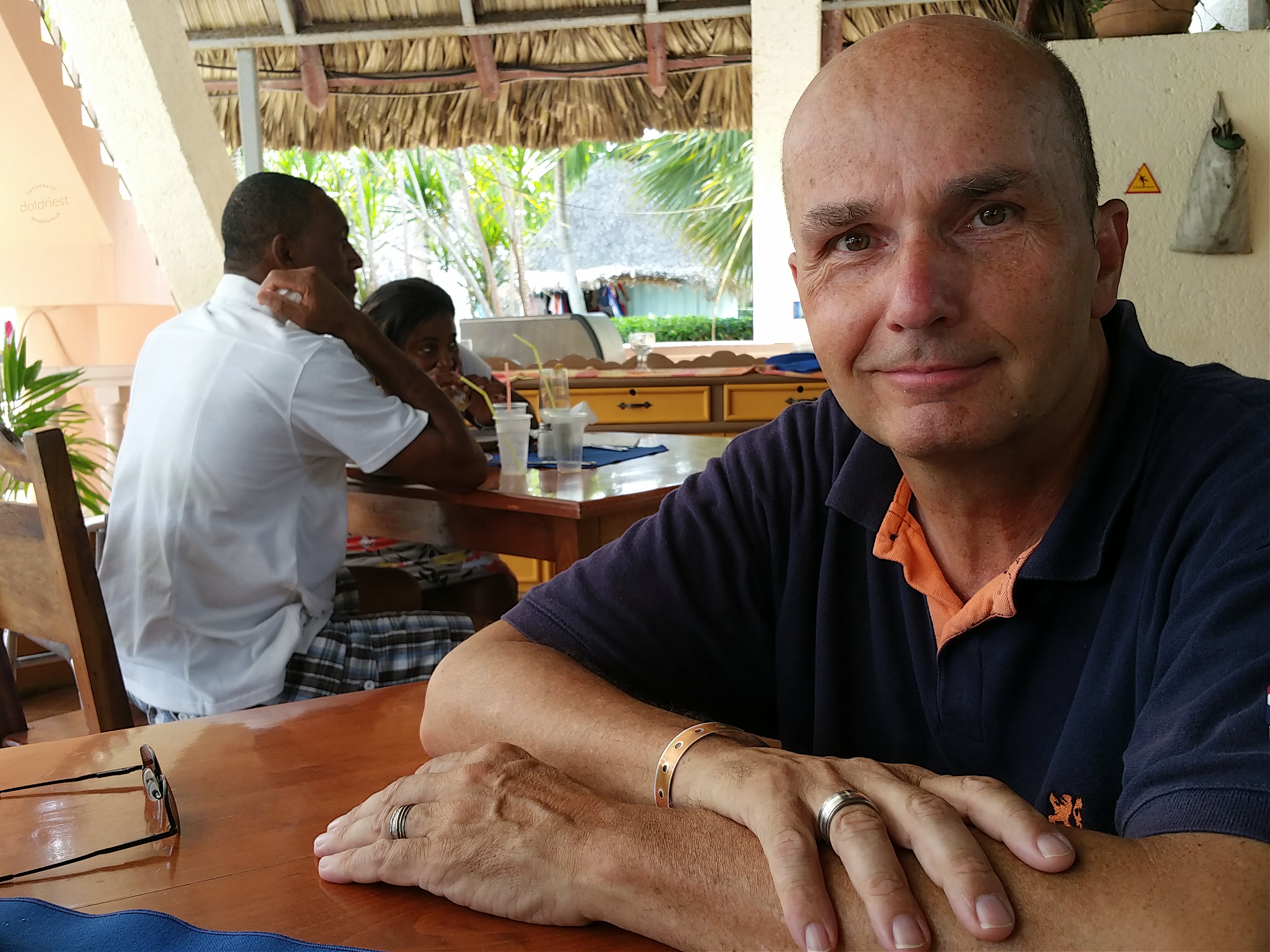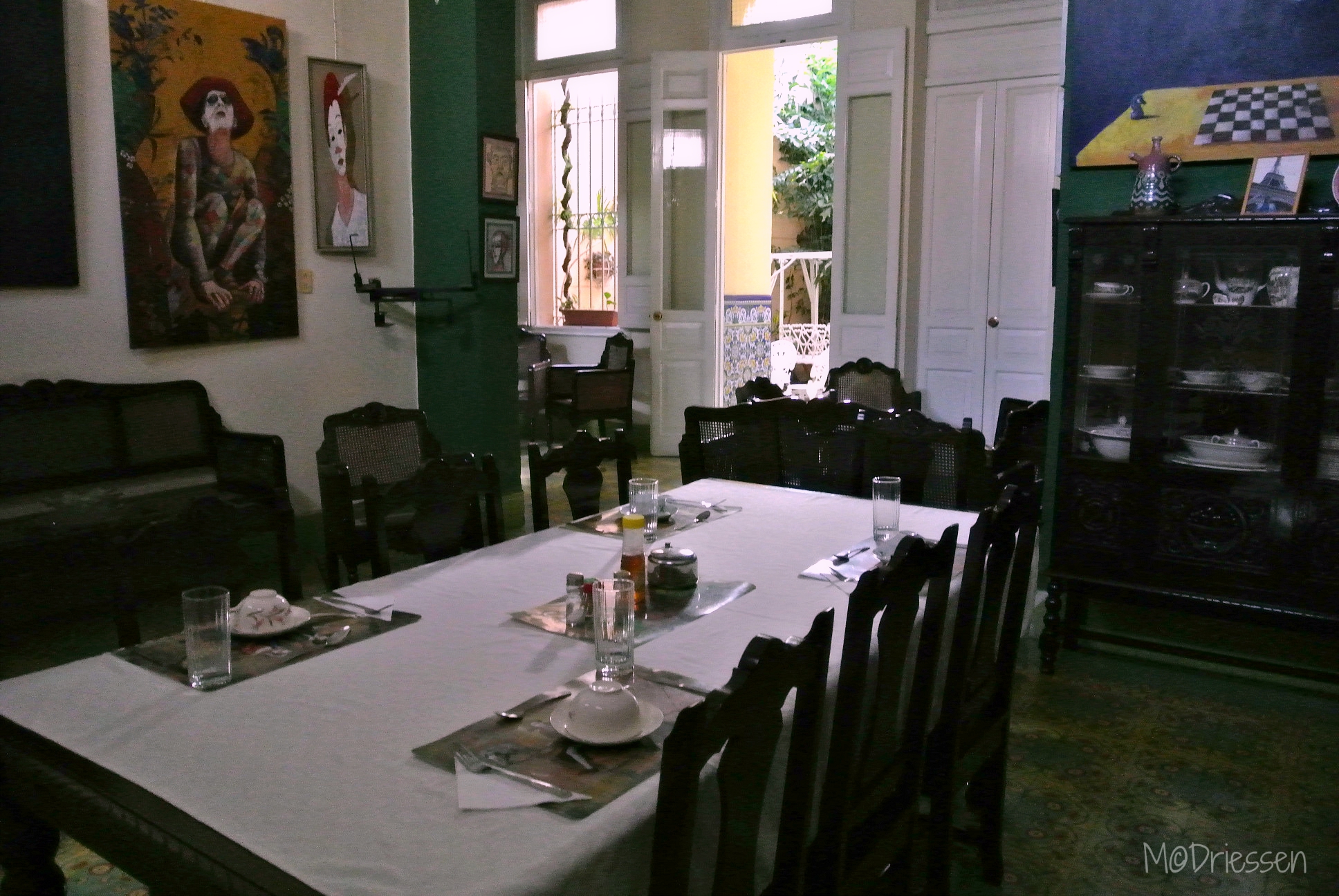Nadat Eduardo nog drie keer erop heeft aangedrongen dat ik nu echt moet gaan genieten en me geen zorgen meer hoef te maken, neemt hij de auto mee. In rap Spaans zegt hij de dames dat zij hem moeten bellen als we hem nodig hebben. Overmorgen zien we hem om 10 uur terug met de auto, omdat we dan doorreizen naar Santiago de Cuba. We bedanken hem uitbundig en hij krijgt van mij een dikke zoen.