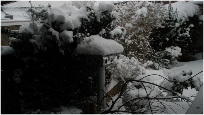 Een roodborstje en een winterkoninkje vertoeven ook in mijn tuintje. Ze weten zich goed staande te houden, want ze zijn al jaren vaste gasten. Zo zijn er nog diverse boompjes en struiken geplant, dit alles ten gerieve van mijn gevederde vrienden. Het is niet altijd gemakkelijk om in deze winterse omstandigheden aan voldoende voedsel te komen, dus steek ik een helpende hand uit. Het pleziert mij – als ik zo toekijk – dat het niet voor niets is, want ik zie steeds meer vogels en vogeltjes gebruik maken van de voorzieningen die ik voor hen geschapen heb.
