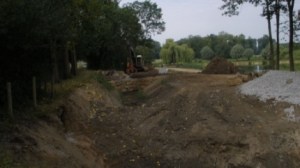 Je ziet dat ze flink bezig zijn geweest met snoeiwerkzaamheden en er ligt ook nog een oude boom waar nog vele voor mij onbekende kevers/larven en weet ik veel wat er nog meer van leven. De Ouvermoer beek – dat is de vroegere afwateringsbeek van de staatsmijnen waar het stof van de gewassen kolen in terecht kwam – Slambeek, zoals het hier genoemd werd, is in de jaren 70 ondergronds in buizen gelegd en mag nu weer in zijn oorspronkelijke loop door het landschap meanderen.