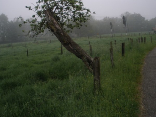 Nu, in de herfst van zijn appelboom-bestaan, heeft hij een kruin waar een niet al te grote vogel met een beetje geluk nog een schaduwplekje kan vinden. Getekend door de tand des tijds staat hij daar, een beetje gebogen maar nog steeds met een kruintje waarmee hij met enige trots toch nog een kleine bijdrage levert. Geen manden meer zoals in vroegere tijden… Maar boer Laeven is een boer naar mijn hart, die respect toont voor deze trouwe boom die hem zo vele jaren zoveel vruchten schonk.