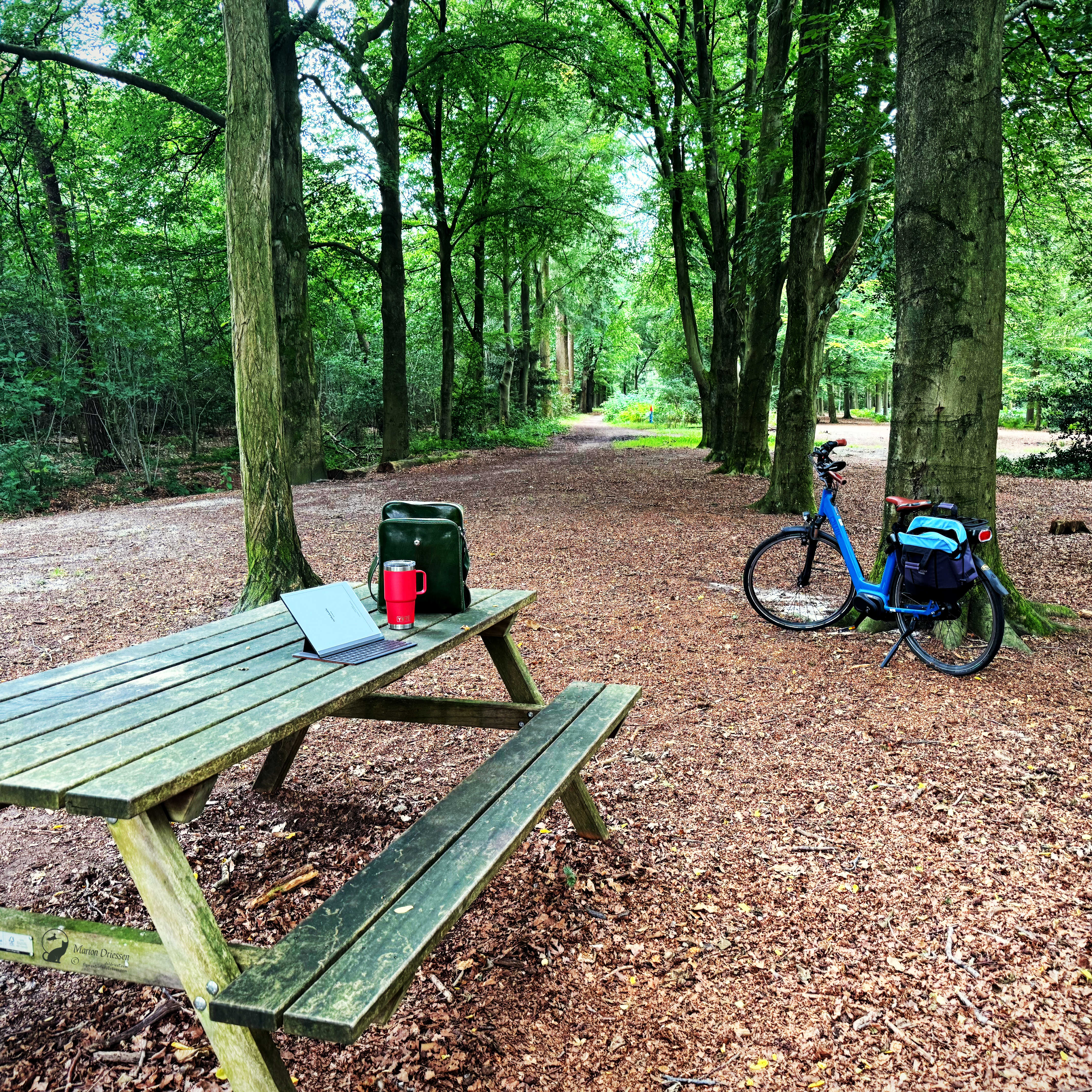 Afgelopen donderdag stapte ik op mijn fiets en vond deze oase van rust, waar ik aan mijn nieuwe novelle schreef. Of misschien wordt het wel weer een roman. In de verte waren kinderstemmen te horen op het kabouterpad, maar voor de rest zongen alleen de vogels…