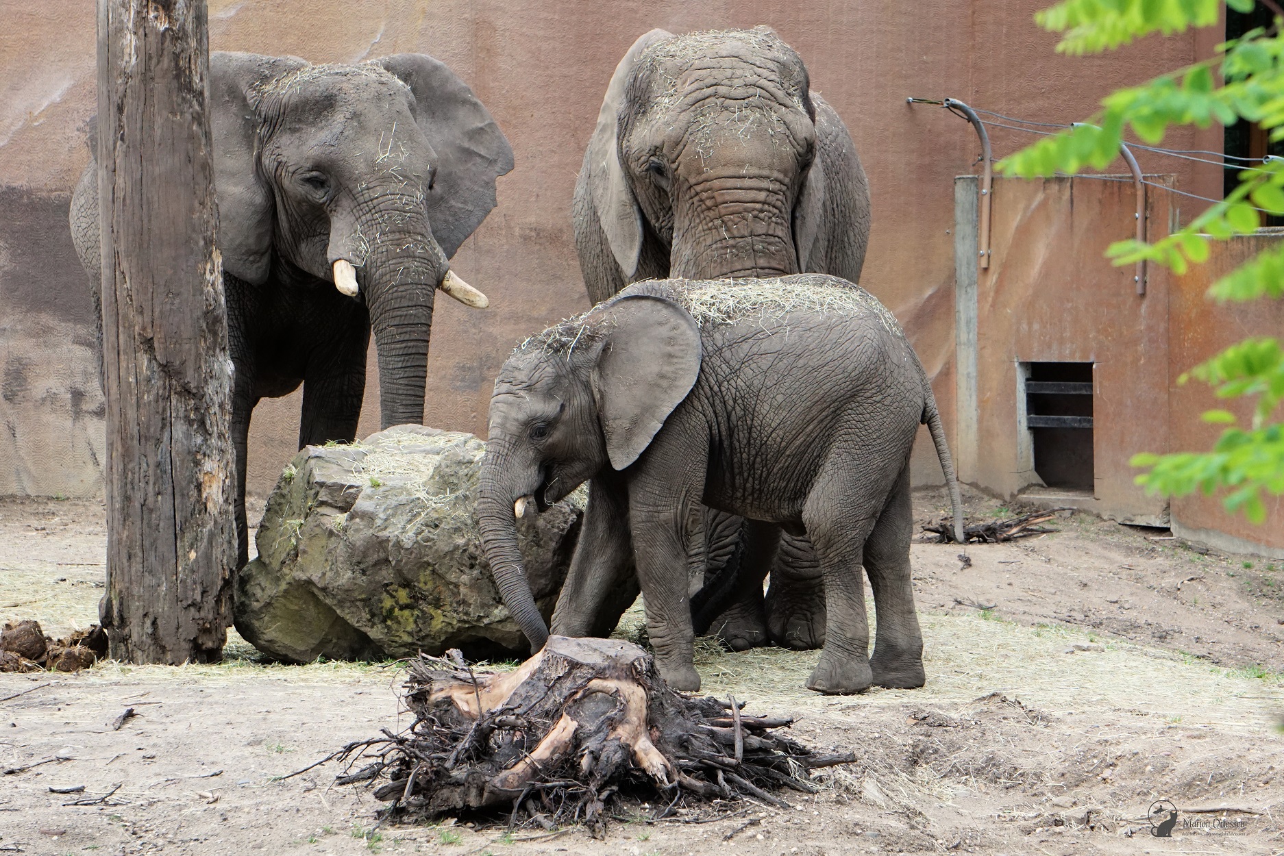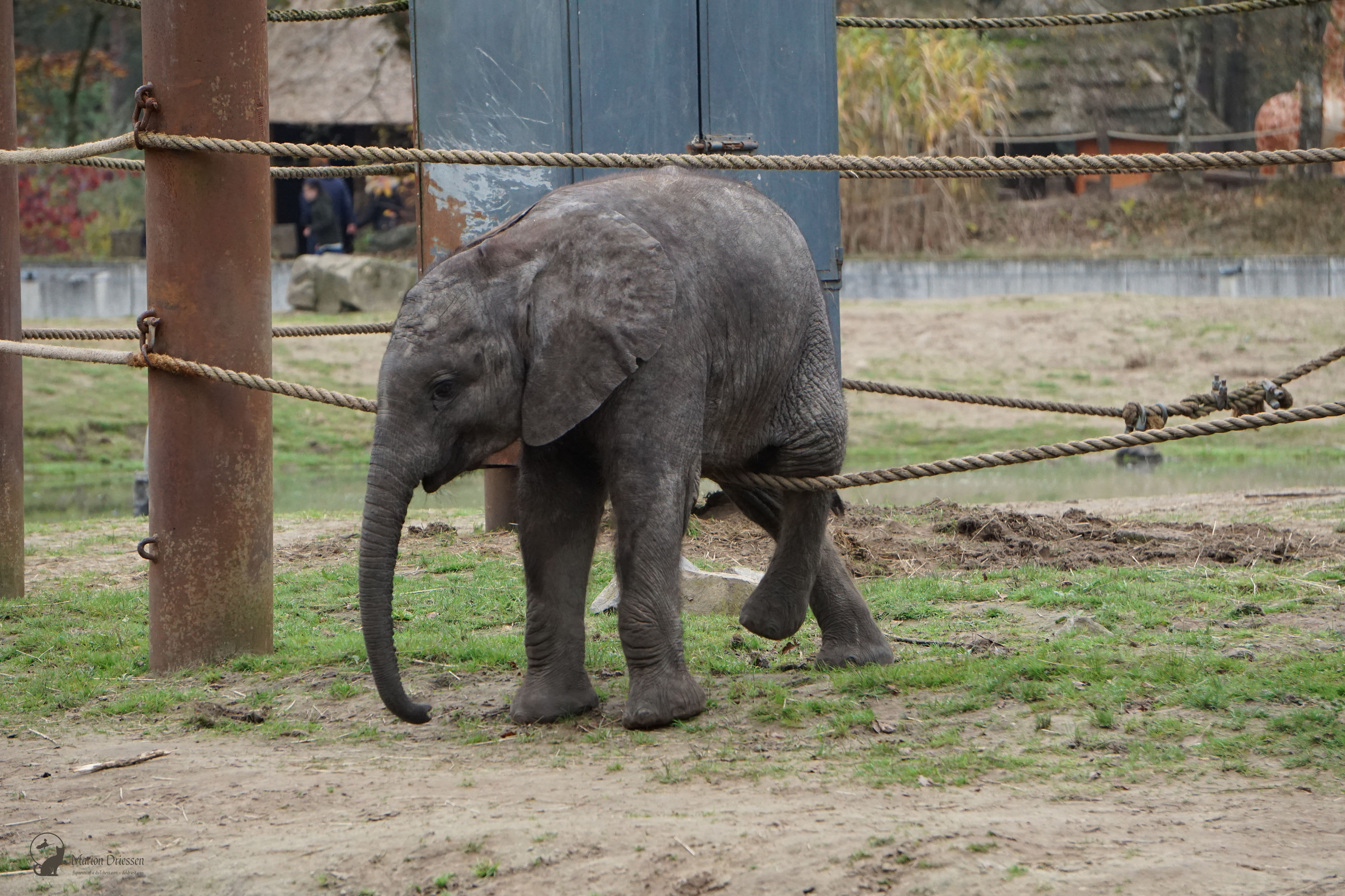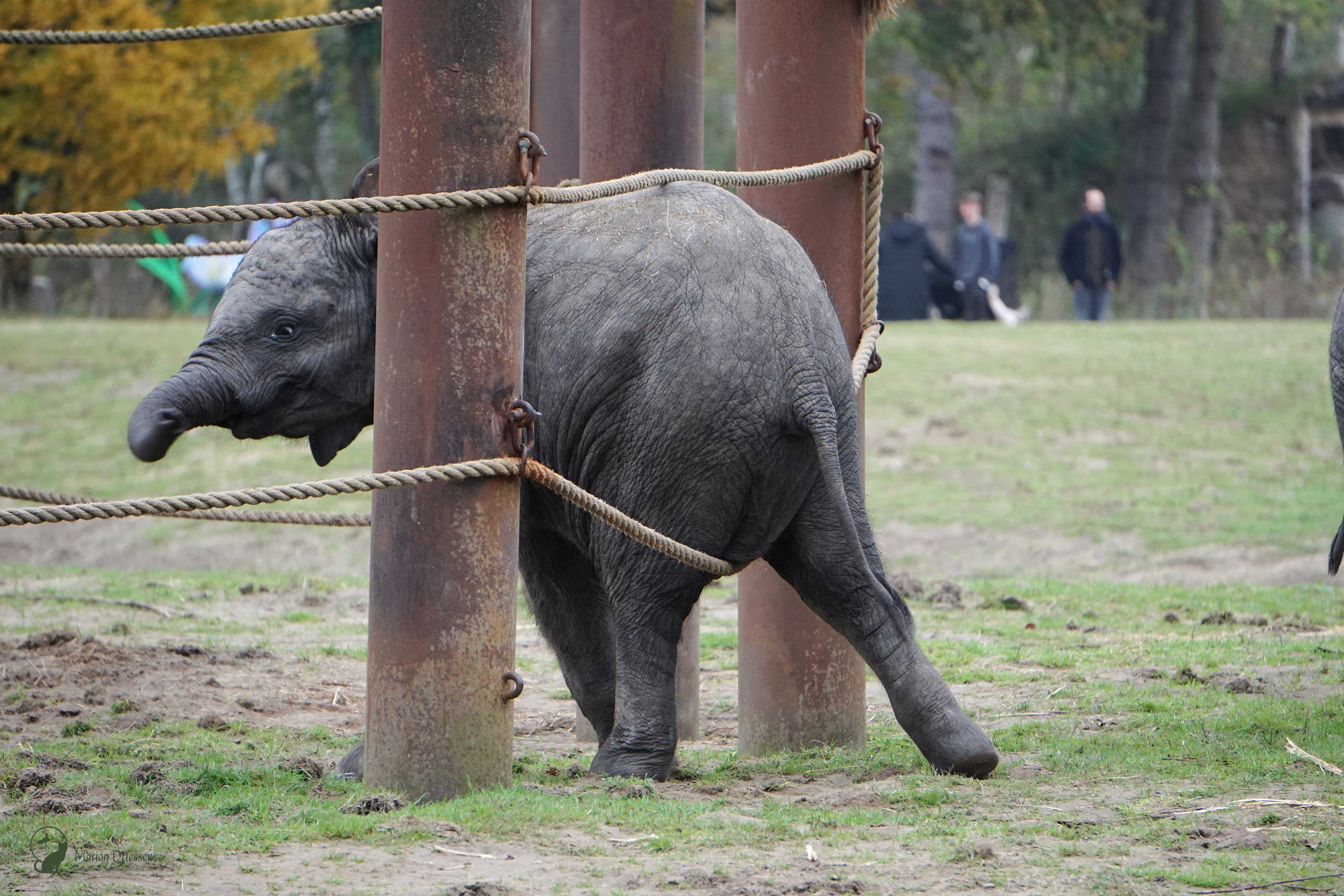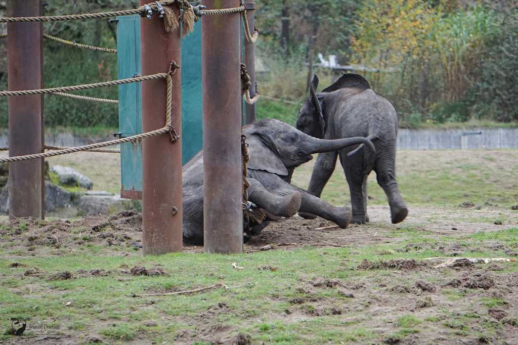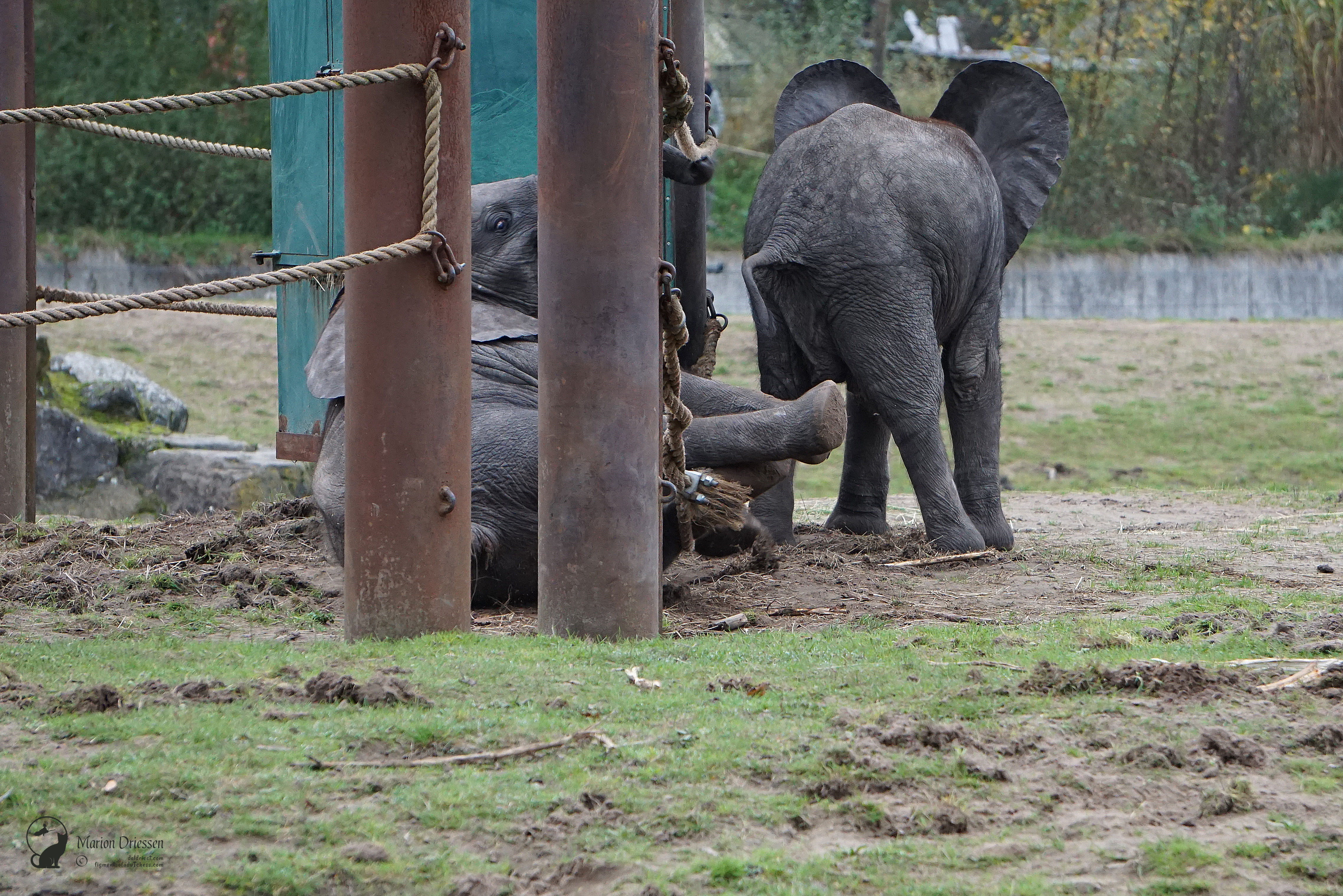 We waren bang dat de olifantjes al vroeg naar de stallen werden gebracht – het park sloot om half vijf – dus sjeesden we met gezwinde pas door het park terug naar de olifantenvlakte. En daar waren ze: Mosi, Ajabu en Tendai. ❤ De peuters speelden met en tussen de touwen, sleepten met takken en voerden schijngevechten uit. Olifantastisch! Ik bleef foto’s maken.