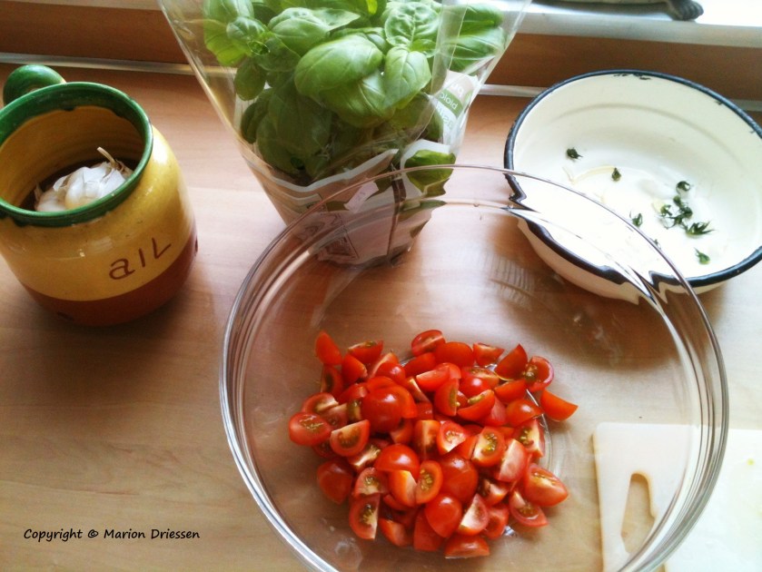 • 2 bakjes cherry tomaatjes, doormidden gesneden
