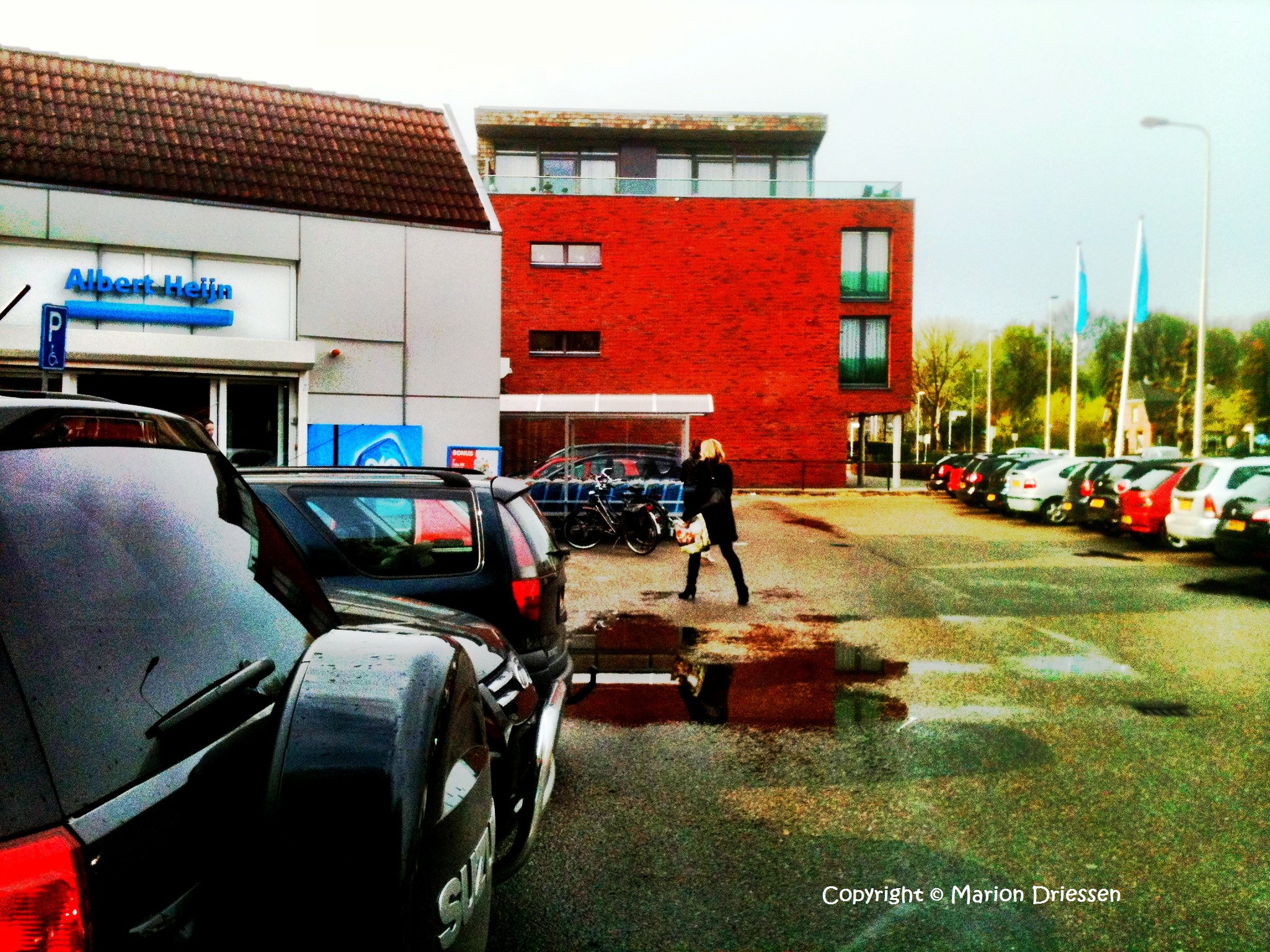 Net als ik voluit op de claxon wil timmeren, rijdt er weer een vehikel weg, waarop het rode autootje langzaam verder naar rechts sukkelt. Ik geef gas en schiet rechtdoor de vrije zijstraat in. Naar het piepkleine parkeerterrein aan de achterkant. Of nog verder. Liever een stukje lopen dan meedoen aan deze chaos. Jippie, in het hoekje is nog een gaatje. Ik parkeer achteruit, grijp mijn tas en marcheer de supermarkt binnen. Wat een gedoe hier ook altijd!